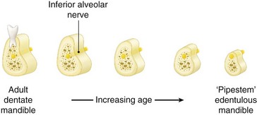 • As shown in the Figure, the resorption of the alveolar process eventually leads to a “pipestem” mandible in elderly patients.