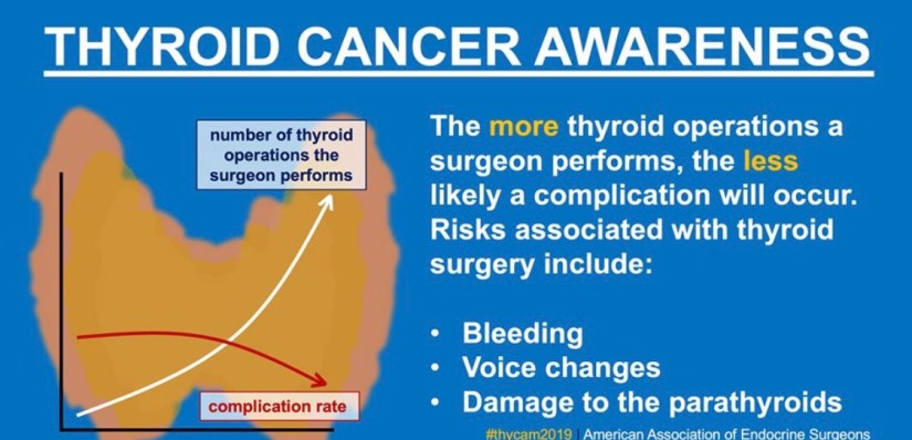 👉In general, thyroid surgery is very safe. Complications associated with thyroid surgery include bleeding, voice changes, and damage to the parathyroid glands. The more thyroid operations a surgeon performs per year, the less likely complications will occur.