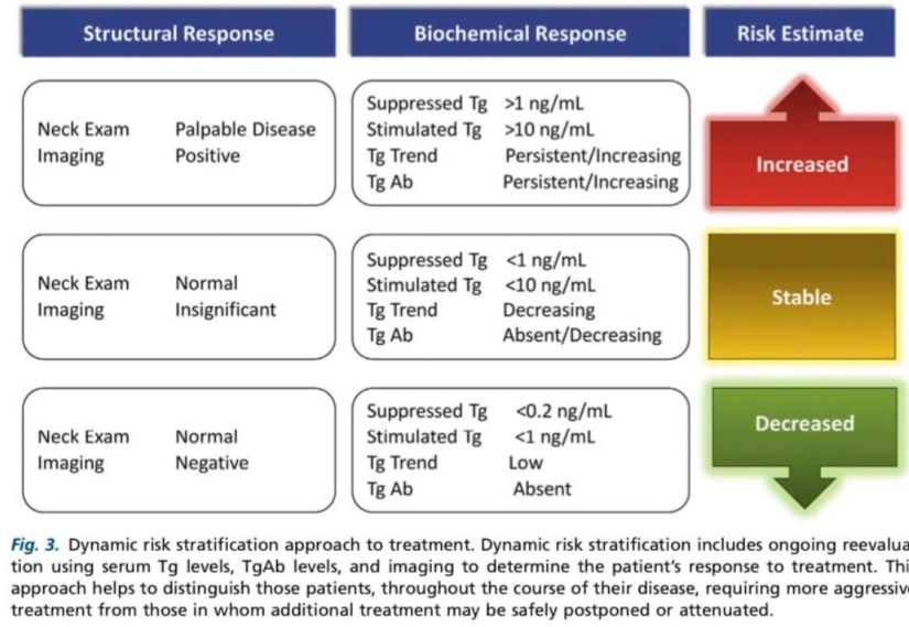 👉Differentiated thyroid cancer is a frequent diagnosis and includes malignancies with diverse clinical behavior. Although overall prognosis is excellent, treatment carries substantial morbidity risks. Stratification of risk, based on pathology, tumor biology, ongoing biochemical and imaging assessments, and patient comorbidities, now forms the essential basis of DTC management with an imperative to provide care that is individualized and disease appropriate.
