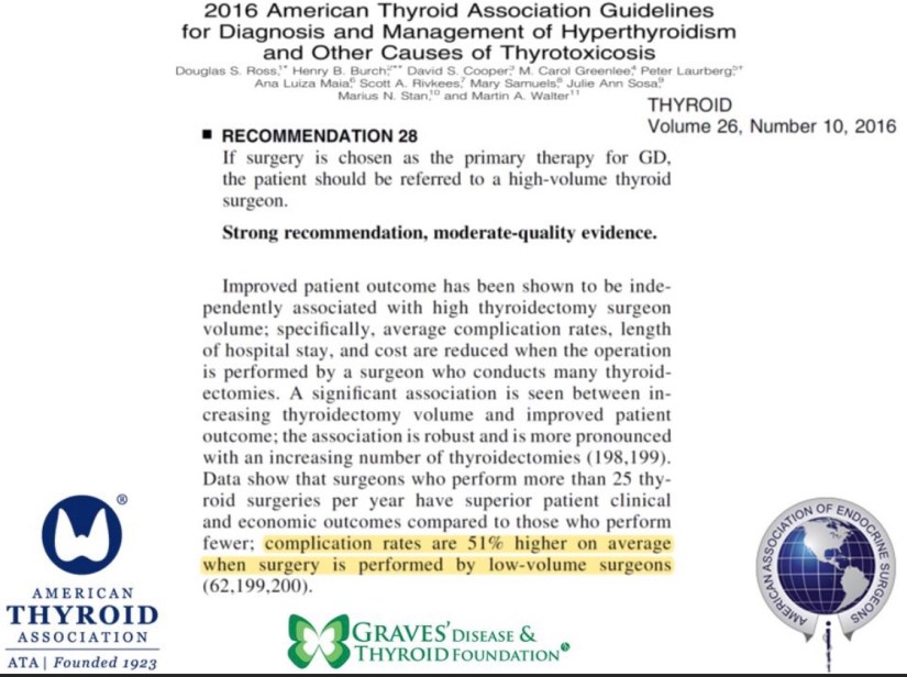 👉If surgery is chosen as primary therapy for Graves’ disease, the patient should be referred to a high-volume thyroid surgeon.