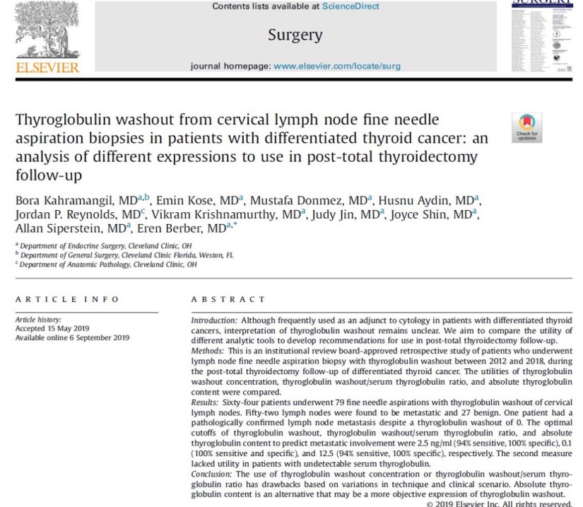 👉Which is best for diagnosis of Lymph node metastasis in #thyroidcancer – FNA Tg washout, Tg washout/serum Tg ratio or absolute Tg? Find out in this article from Cleveland Clinic presented at #AAES2019