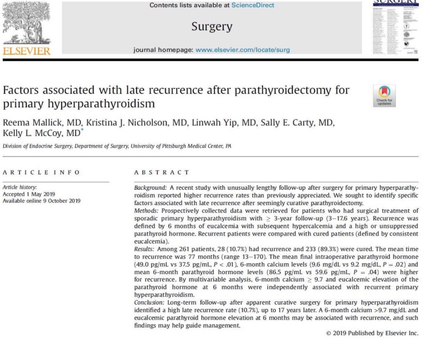 👉Which factors predict late recurrence of PHPT after curative surgery?
