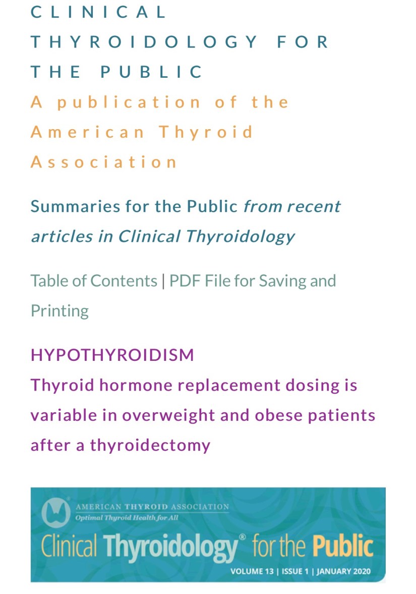 👉Thyroid hormone replacement dosing is variable in overweight and obese patients after a thyroidectomy