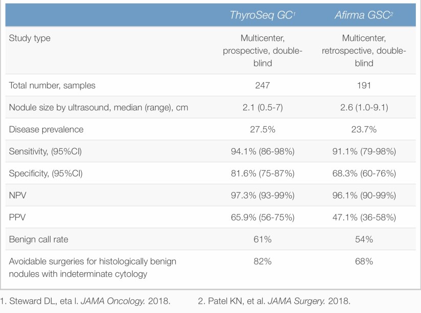👉This means that patients with nodules that have indeterminate cytology but are histologically benign would avoid diagnostic surgery with ThyroSeq GC more often than with Afirma GSC.