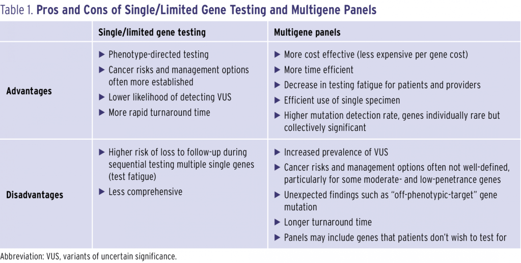 👉There is a 20% to 40% chance that a modern multigene panel test will identify a VUS, compared with only a 5% chance that it will identify a clinically useful pathologic mutation in a gene that is not BRCA1 or BRCA2.