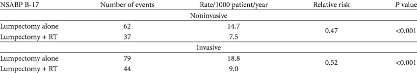 👉The benefit of lumpectomy plus radiation was virtually unchanged between 5 years and 8 years of follow-up and was due to a reduction in invasive and noninvasive ipsilateral breast tumors (IBTs).