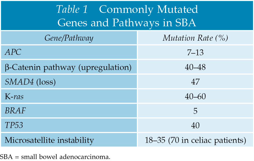 - Multiple mutations have been identified in small bowel adenocarcinomas: