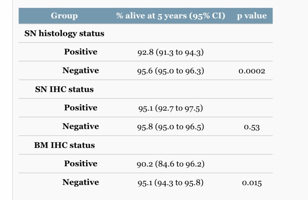 - Showed that neither IHC detected metastasis in SN (p=0.66) or BM (p=0.08):
