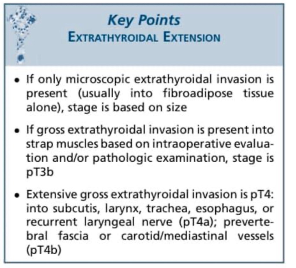 - Extent of gross extrathyroidal extension (ETE)