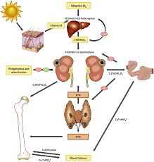 Parathyroid hormone (PTH) acts to raise blood calcium levels via its action on 3 organs. 1. The kidneys by Increased calcium reabsorption, Decreased phosphate reabsorption, Increased conversion of vitamin D to its final form – 1,25(OH) vitamin D; 2) Bones (increased resorption); 3) Intestines (increased absorption largely due to increased vitamin D in its final form).