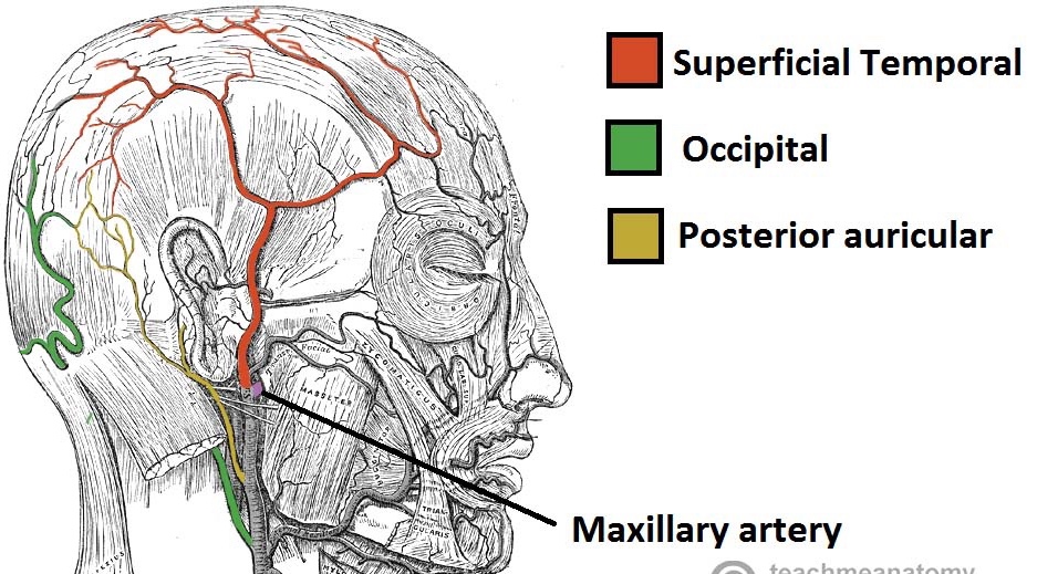 - There are three branches of the external carotid artery involved: