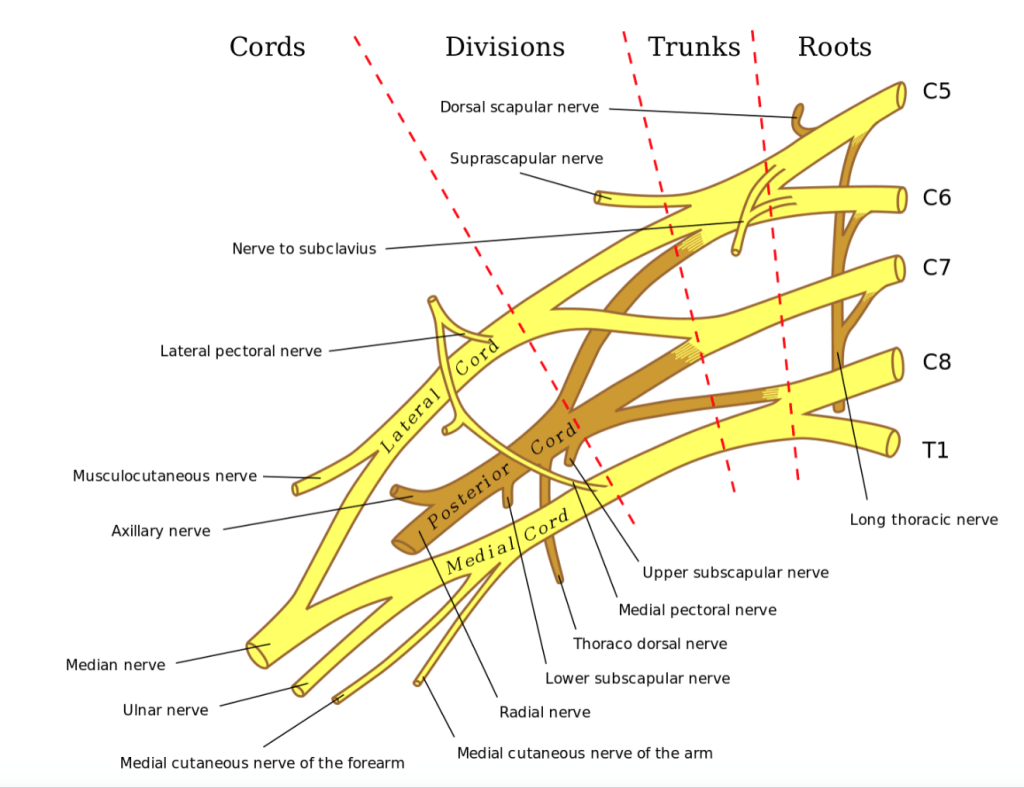 - Typically arises from anterior rami of the cervical spinal nerve roots C5 to C7: