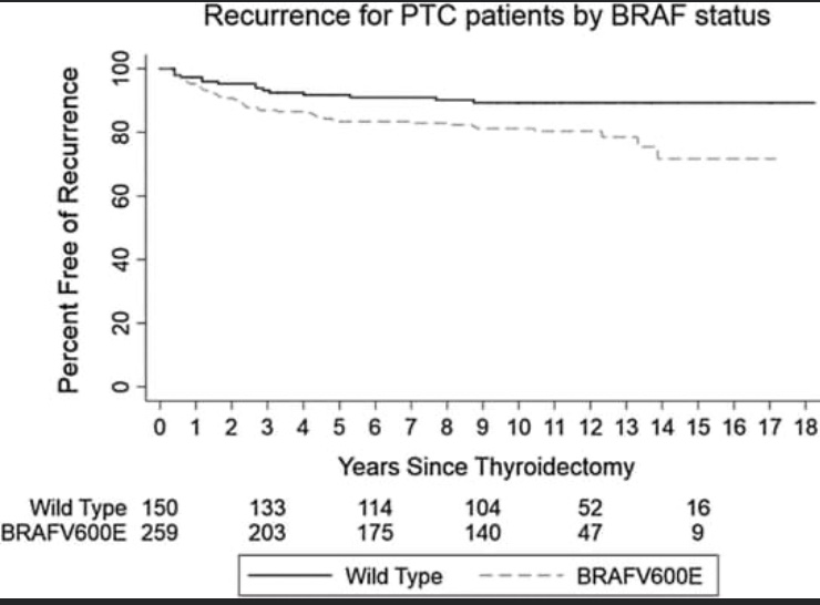 👉Certain mutations (e.g. BRAFV600E) are independent risk factors for recurrence.