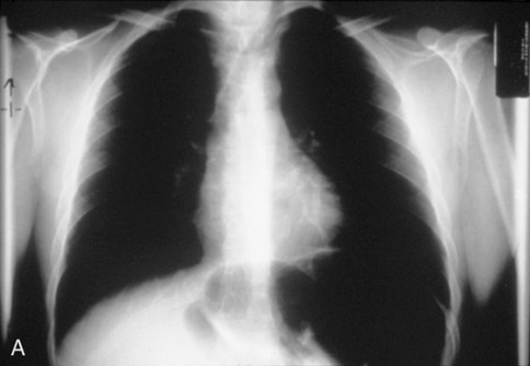 - Chest radiograph showing airway deviation → axial CT or MRI