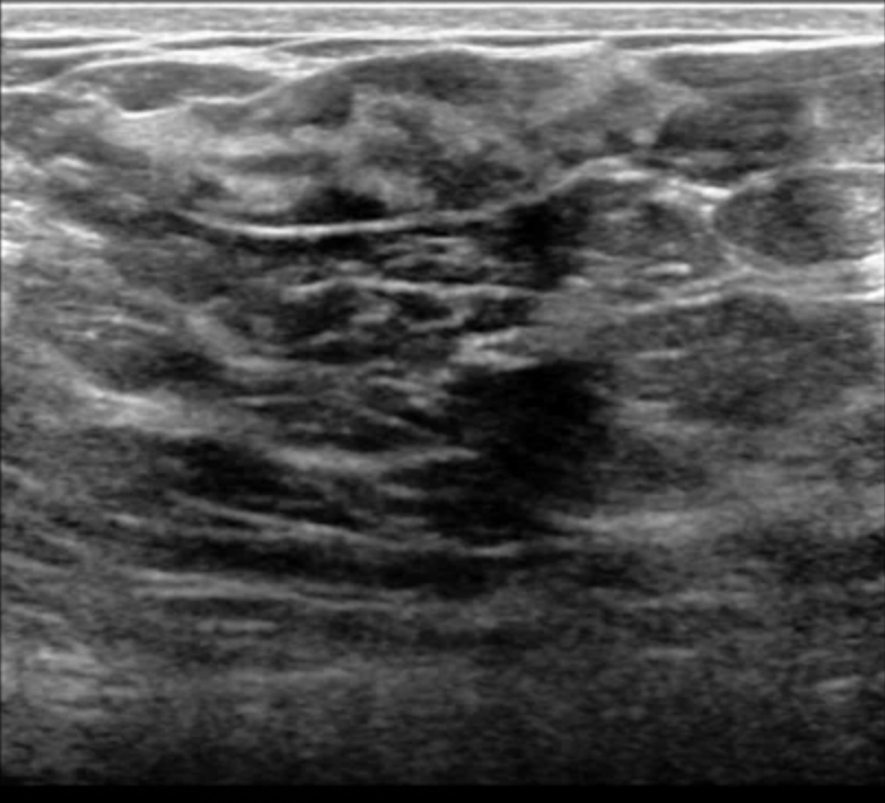 - When a focal lesion with well-defined borders, containing no calcifications on mammography or a well-defined hypoechoic mass on ultrasound is seen: