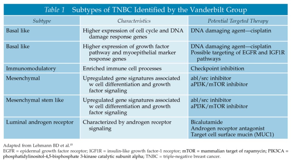 - Several emerging paradigms have attempted to define TNBC heterogeneity:
