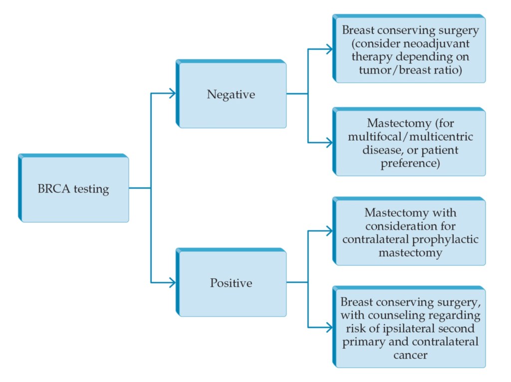 • Genetic testing and BRCA 1/ BRCA 2 status guide surgical choices as per the algorithm are shown in Figure