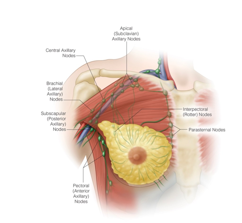 - In addition to blue dye is recommended for SLNB after previous axillary operation to aid in localization and identification of extra-axillary drainage