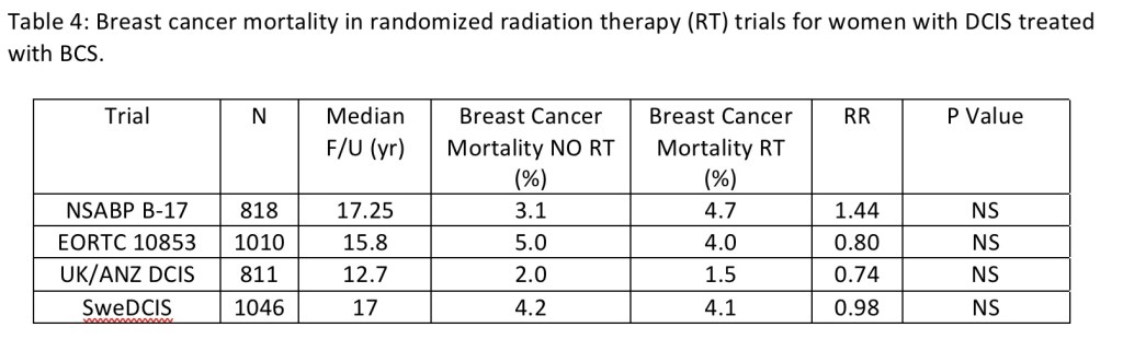 - The role of adjuvant RT in women undergoing BCS for DCIS have been studied in four prospective randomized trials: