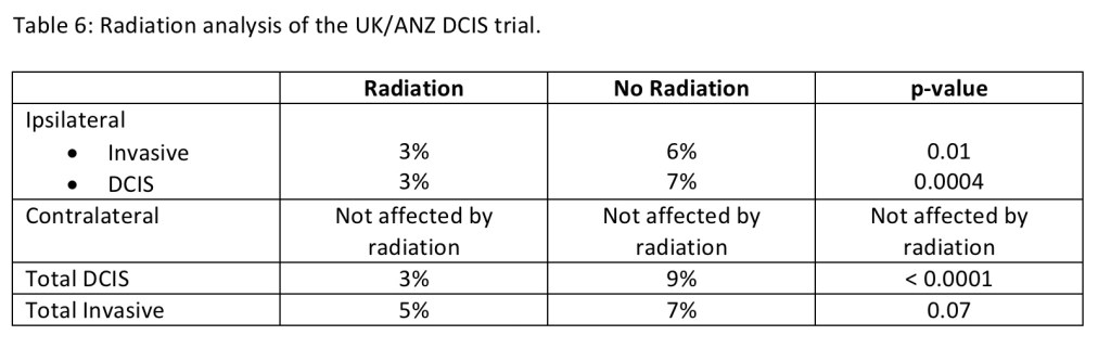 - The conclusion of the E5194 trial was that for patients with DCIS of the breast who had favorable clinical and pathologic factors and were managed with surgical excision alone (without radiation):