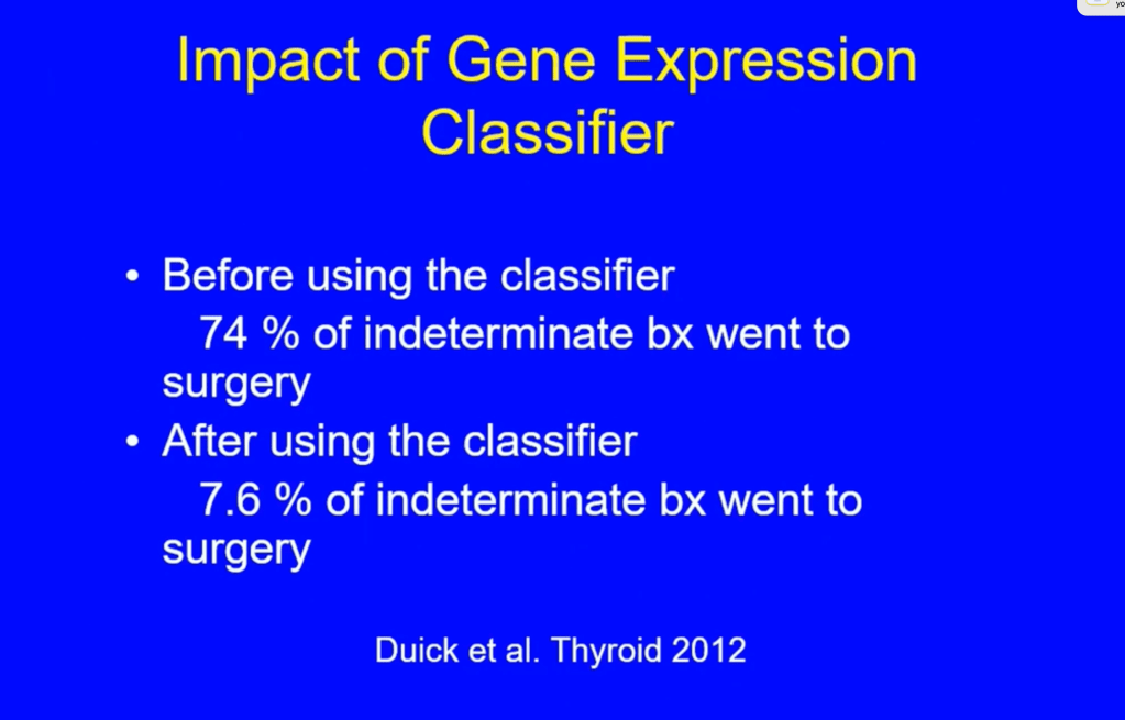 - Therefore, when utilized as part of the diagnostic armamentarium for cytologically indeterminate nodules with a risk of malignancy of 25% or less: