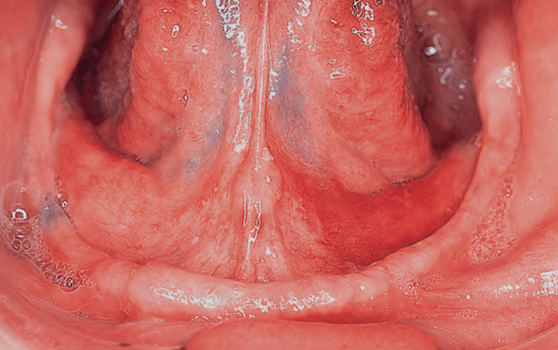 - Erythroplakia usually manifests as a pinkish, velvety flat