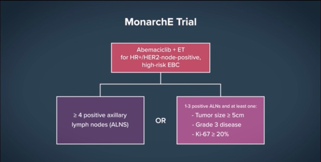 • In contrast, in the monarchE trial, abemaciclib showed a robust benefit in preventing recurrence, which was sustained after longer follow-up, as reported at the San Antonio Breast Cancer Symposium 2022