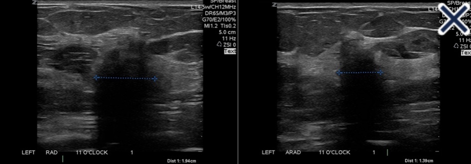 • Among other things, the lateral borders of lesions can be seen better with compound imaging