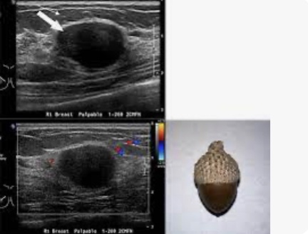 • The nodule in an acorn cyst is less echogenic than papillomas or papillary carcinomas: