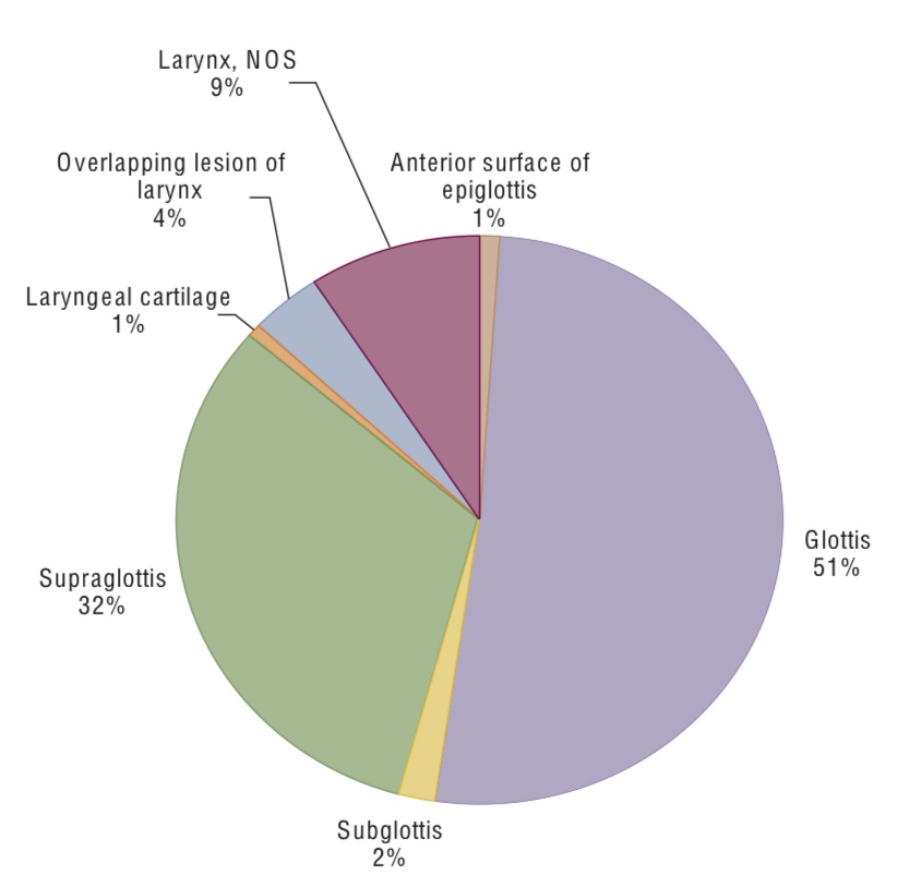 • The glottic region is by far the most common site for primary malignant tumors in the larynx