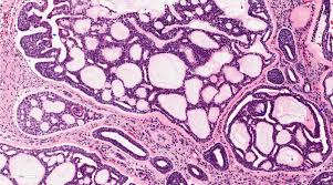 - They have a basaloid epithelium clustered in nests in a hyaline stroma