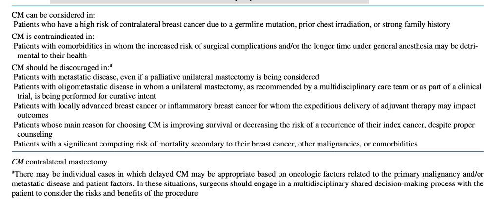 - Recommendations for the use of contralateral mastectomy in patients with unilateral breast cancer