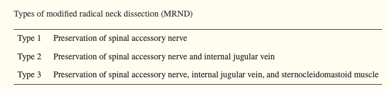 - Preservation of the spinal accessory nerve, internal jugular vein (IJV) and sternocleidomastoid muscle:
