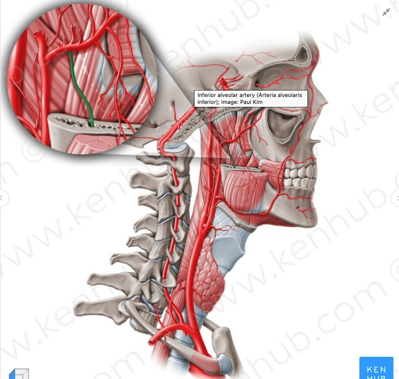 - Supplying the pulps of the mandibular teeth (with its dental branches) and the body of the mandible