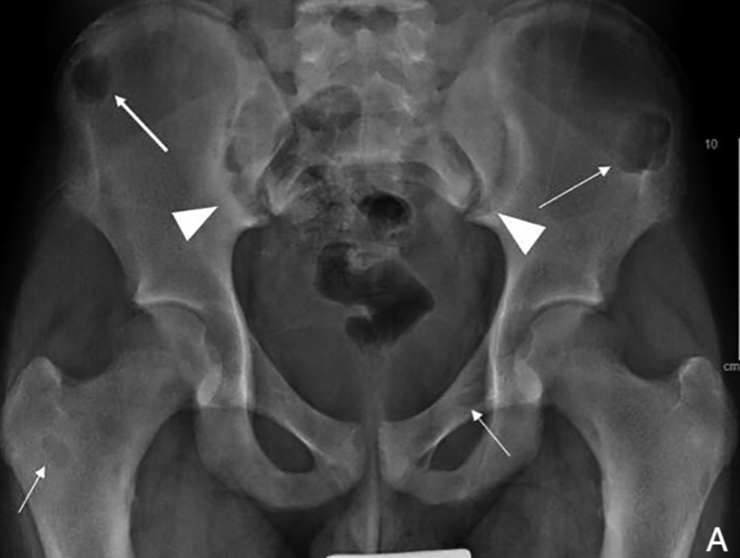 Caused by the accumulations of osteoclasts and fibrous tissue: