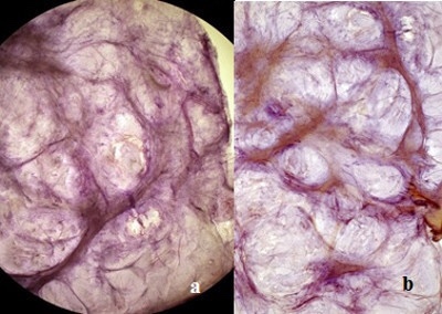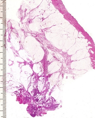 Large format subgross (3D) histology images of a diffusely infiltrating breast cancer