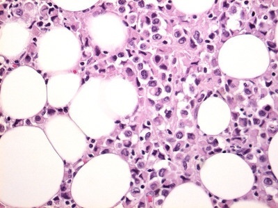Large format histology slide of diffusely infiltrating breast cancer similar to growth pattern of linitis plastica