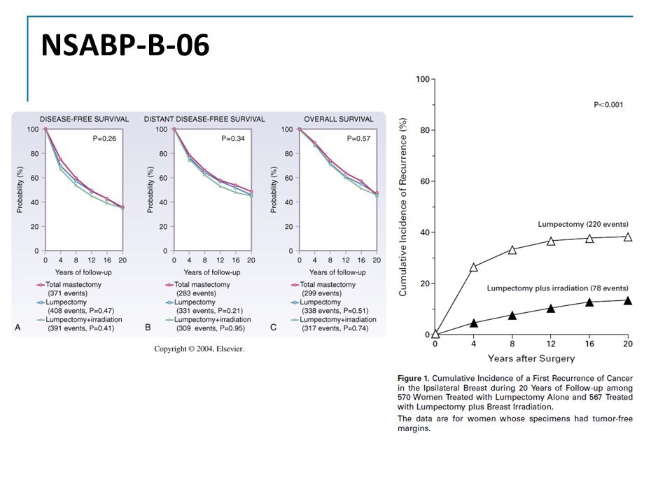 - Compared lumpectomy and ALND with or without breast radiation with MRM:
